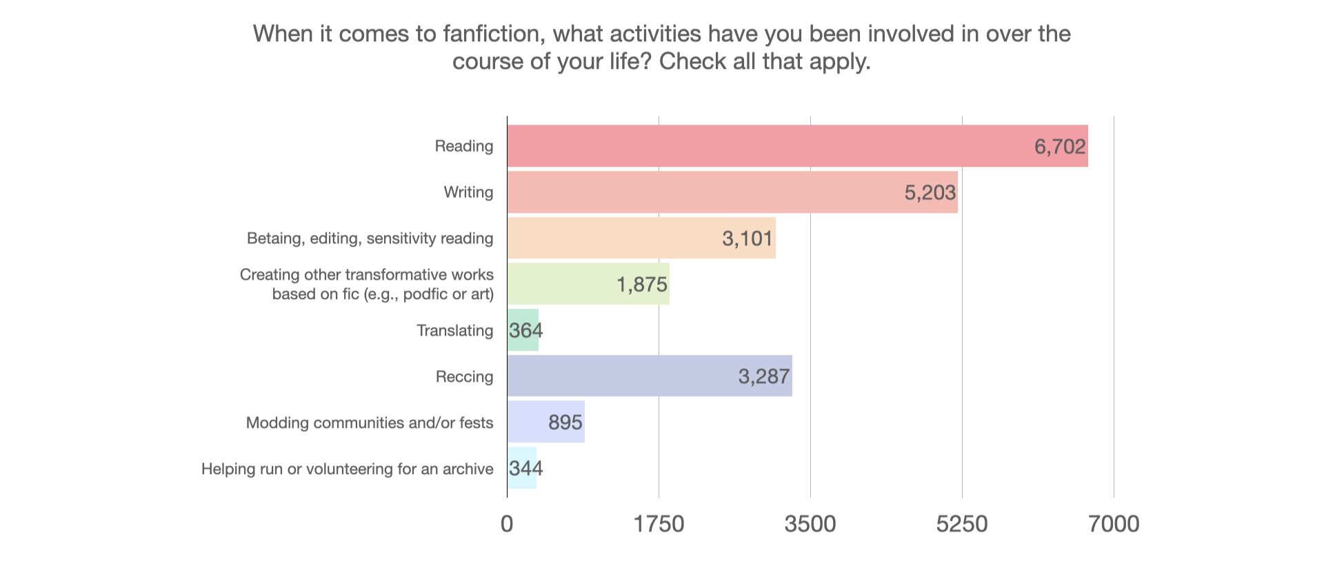 FK: Yeah! It’s about this mini-survey that we just ran about people’s habits. Like: do you read fanfic for source material that you have not consumed? And we got like 7,000 people responding to the survey!
