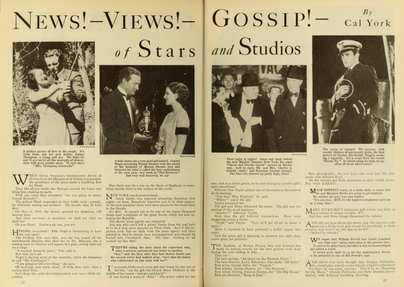 “And they said those things threatened the talkies!” A scan from the January 1931 issue of Photoplay.